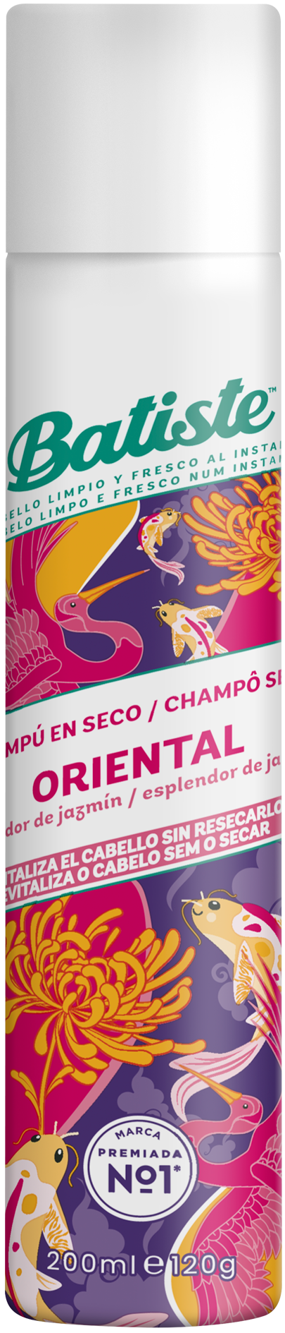 ¿Quieres sentirte como Jasmine de Aladdin? Ahora puedes con Batiste Oriental. Su bonita y opulenta fragancia te transportará a tierras lejanas. Con un toque de jazmín y ámbar lujoso, aprovecha el día y brilla por la noche. Un toque de Batiste Oriental elimina el aceite de manera efectiva, dejando el cabello con un aspecto limpio para que te sientas fabuloso al instante, sin resecarlo. Dale a tu cabello una nueva vida con más cuerpo y textura entre lavados, siempre que lo necesites. ¡De nada!